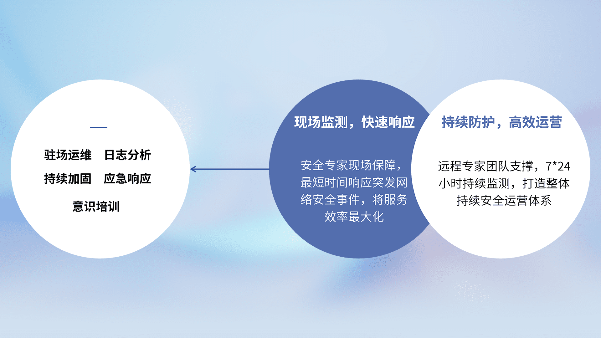 针对客户行业特性,,,提供专属的一站式安全管理服务,,,,帮助客户全面感知网络空间威胁,,,通过安全专家的线上、、、线下防护支持,,,实现风险闭环,,,将安全保障常态化,,,为客户打造常态化安全运维运营服务。。